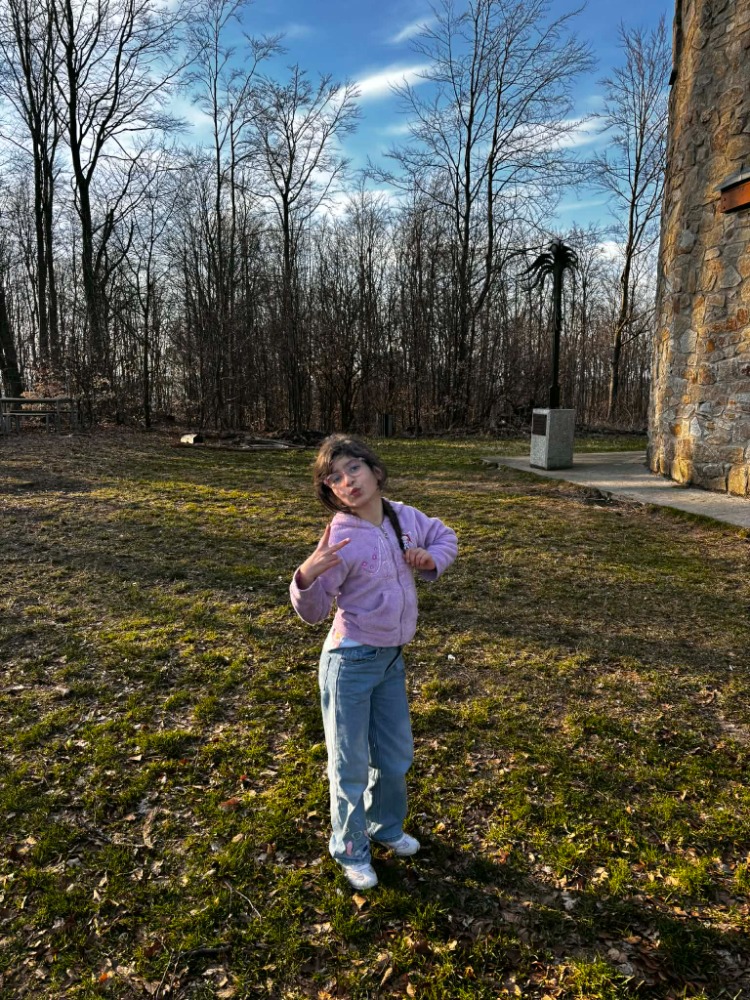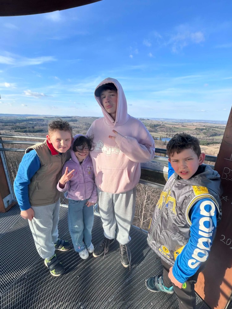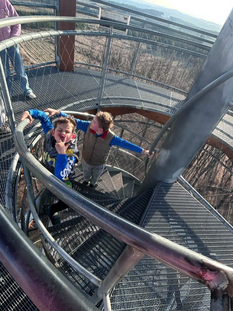 Byl aprílový den a sluníčko krásně svítilo. 🌞 Vyrazili jsme na výlet v pěti lidech. Když jsme zaparkovali, čekala nás dlouhá cesta k rozhledně. Chvílemi to vypadalo, že to snad ani nedáme, ale nakonec jsme do toho dali všechny síly. Teta nás vedla podle navigace, která nám ale trochu pletla hlavu i cesty. Museli jsme zdolat obrovský kopec a pak se prodírat stezkou plnou trní, klacků a padlých stromů. 🌲 Chvíli jsme se báli, že se ztratíme, ale díky bohu jsme to zvládli! Když jsme se konečně vymotali z křoví, stáli jsme u rozhledny Mařenka. Čekalo nás sice hodně schodů, které nás pěkně štvaly, ale přes všechen strach a nervy jsme vystoupali až nahoru. ⬆️ Ten výhled byl za odměnu! Fotili jsme jako diví a natočili i video pro tety z domova. Cesta dolů byla taky zajímavá. Potkali jsme pár lidí, ale pak jsme začali váhat, kudy vlastně jdeme. Už jsme se chtěli i vracet, ale nakonec jsme se po chvíli motání ocitli znovu u rozhledny. Pak už jsme naštěstí tu správnou cestu našli. Zpátky k autu jsme si pouštěli písničky a zvesela běhali po cestě. Myslím, že jsme si to všichni užili, a i když jsme rádi, že jsme v pořádku zpět, budeme mít na co vzpomínat!