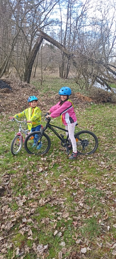 • Na náš první cyklovýlet jsme vyrazili jednu březnovou sobotu, kdy bylo docela hezky.  Udělali jsme okruh asi 15 km se zastávkou v Budišově a občerstvením v místním obchůdku. Po cestě jsme objevili malý zatopený lom u Valdíkova, moc pěkné místo, kam se určitě v létě zajedeme vykoupat. Angelo se také v březnu naučil jezdit na kole, abychom už v dubnu mohli vyrazit na menší cyklovýlet okolo rybníku Pyšelák a na „Tarantuli“ (mystický skalní útvar, připomínající Menhiry).